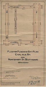 Plan, Plan for placing on City Plan Carlisle St. from Montgomery St. southward. 29th Ward. [Ordinance Nov. 15, 1909; confirmed March 7, 1910] Original size: 9 x 17 in. (estimated)