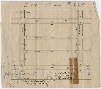 Plan, [No title. Probably plan of Alder Street and Warnock Street. Survey returned July 15, 1872; confirmed Feb. 3, 1873] Original size: 8 x 10 in. (estimated)