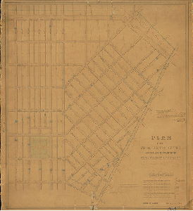 Plan, Plan of the Third Section of the survey and regulation of Kensington District approved by the Board of Commissioners May 17, 1852, revised and returned 1852, by James P. Davis. Original size: 42 x 46 in. (estimated)