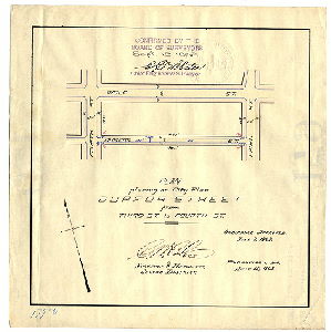 Plan, Plan placing on City Plan Durfor Street from Third Street to Fourth Street [Ordinance June 2, 1898; confirmed Sept. 19, 1898], 1898 Original size: 11 x 11 in. (estimated)