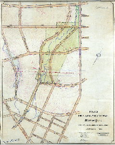 Plan, Plan for placing on the City Plan Morris Parkas authorized by ordinance of Councils approved July 7th, 1908 [Confirmed Feb. 7, 1910] Original size: 45 x 57 in. (estimated)