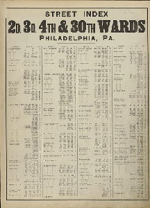 Street Index, Atlas of the 2nd, 3rd, 4th & 30th Wards of the City of Philadelphia, 1917 Original size: 16 x 22 in. (estimated)