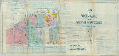 Plan, Plan of Snyder Avenue from Twenty-third to Thirty-second St., Forty-eight Ward, Philadelphia. Prepared for use of the Board of View in the matter of the opening thereof under ordinance approved April 26, 1915., 1916 Original size: 21 x 45 in. (estimated)
