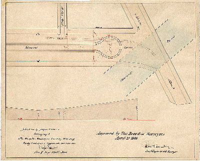 Plan, Section of proposed track belonging to the Peoples Passenger Railway Company [Ordinance March 23, 1889; approved by Board of Surveyors April 15, 1889], 1889 Original size: 17 x 21 in. (estimated)