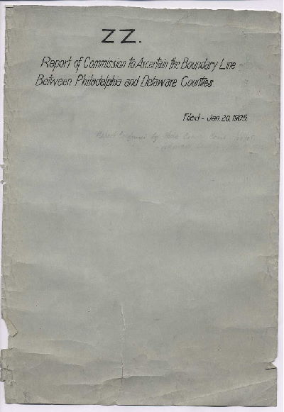 p. 1, ZZ. Report of Commission to ascertain boundary lines between Philadelphia and Delaware Counties. Filed Jan. 20, 1905 Original size: 4 x 6 in. (estimated)