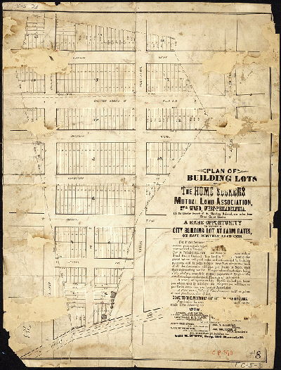 Plan, The Home Seekers Mutual Land Association [Newspapers.com search found 28 exact hits in Phila Times, earliest 1894] Original size: 28 x 38 in. (estimated)