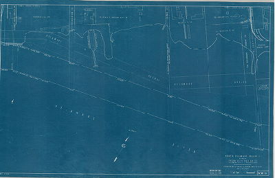 Plan, North and south wharves, Delaware River. Department of Wharves, Docks and Ferries, Philadelphia. NW15. North Delaware wharves between Tyson St. and Bleigh St. Original size: 15 x 23 in. (estimated)
