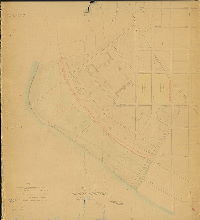 River bank, meadow ditches, railroads, property owners, acreages and conveyances, Beaver Run, wharves, bridge, building footprints