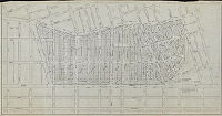 Shows 1632 house lots, with calculations of cubic yards of cuts and fills needed to prepare the site for construction. This plan was never executed; public housing towers were built on the eastern half of the property.